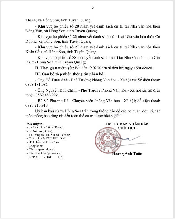 Thông báo Về việc niêm yết danh sách cử tri bầu cử đại biểu Quốc hội khóa XVI và đại biểu Hội đồng nhân dân các cấp, nhiệm kỳ 2026-2031